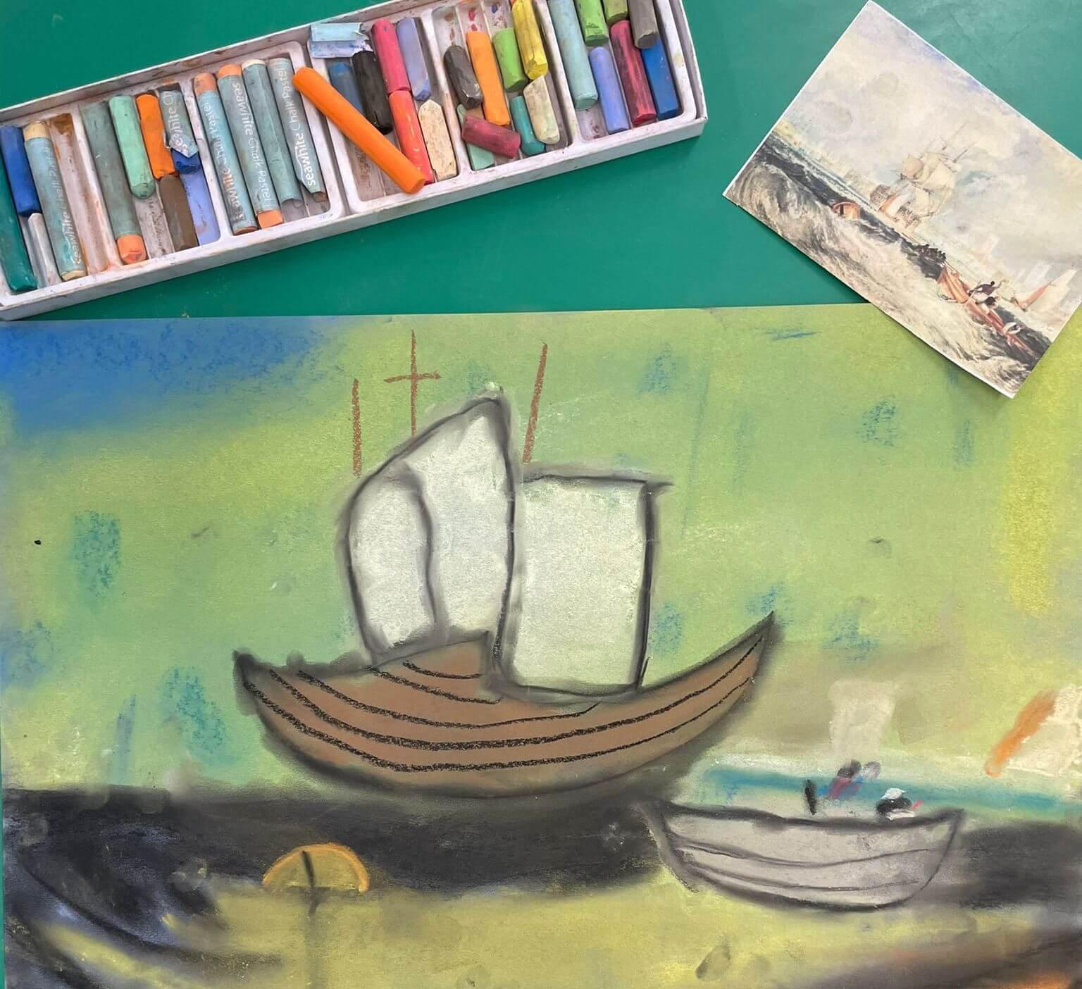 An incredible opportunity to explore JMW Turner’s marine scenes and experiment with watercolours! After looking at a selection of vibrant watercolour paintings by JMW Turner, pupils will have the opportunity to make their own watery landscapes. They will be encouraged to express themselves in a playful and improvised style, inspired by the experimental way that JMW Turner painted.